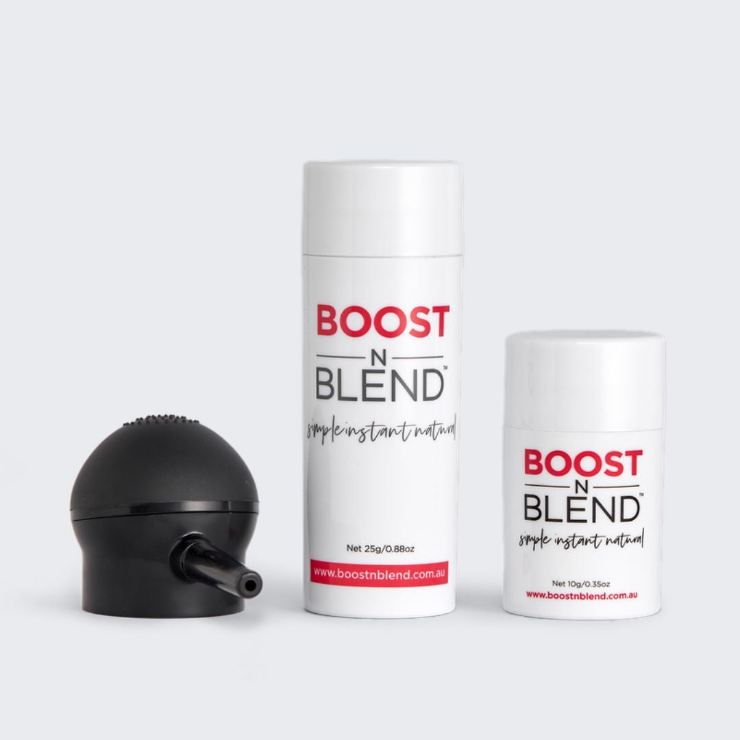 Using cotton micro fibres which cling to each hair shaft, Boost N Blend disguises thinning hair and visible scalp by boosting the volume of your hair at the roots. Each strand will instantly appear up to 10 times thicker.