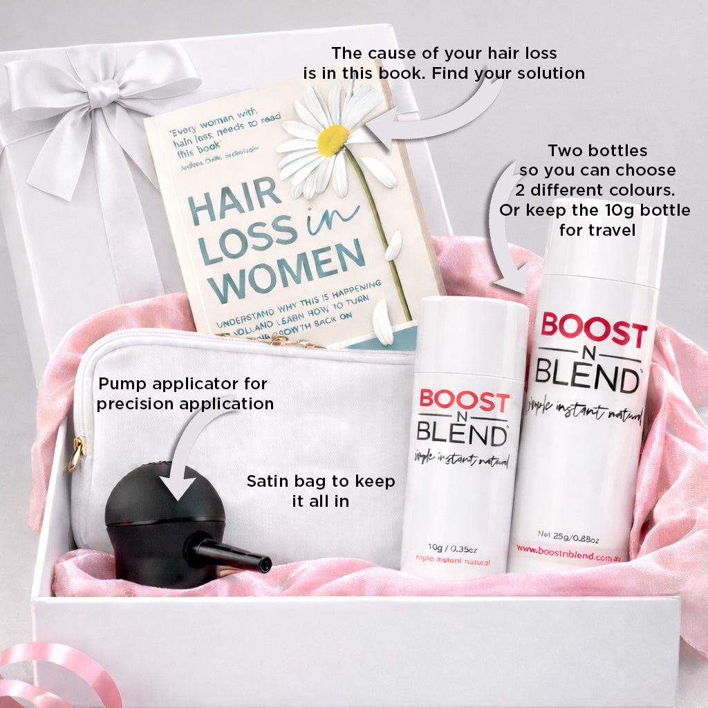 I bought Boost n Blend a few weeks ago and I just had to tell you that I am really impressed with it. It is an excellent product and it has worked wonders on the crown of my head where I had a very thin patch! Thank you!